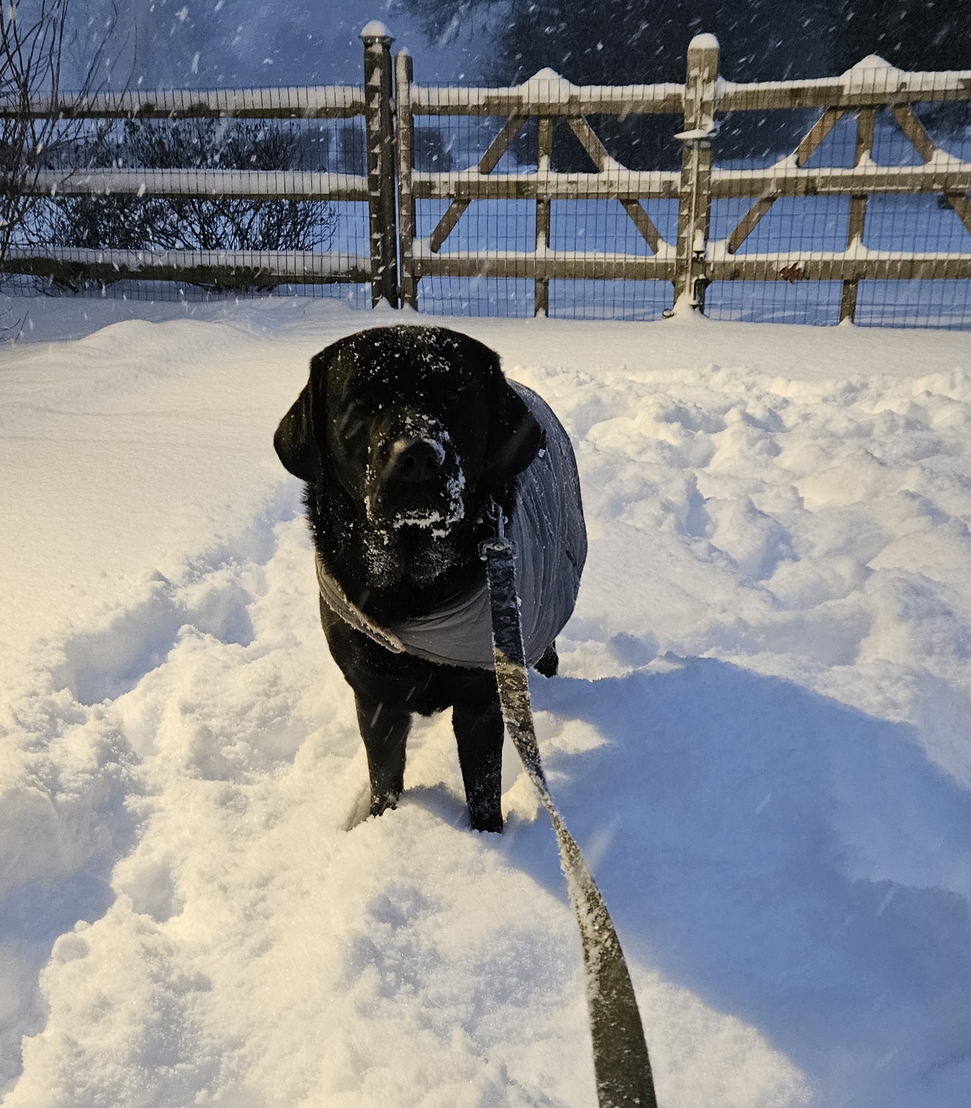 More: Bear has moved to a new home in Pennsylvania. Here he is, loving the snow! Too much of it bothers him though, because he has heart disease, and does not have good circulation.