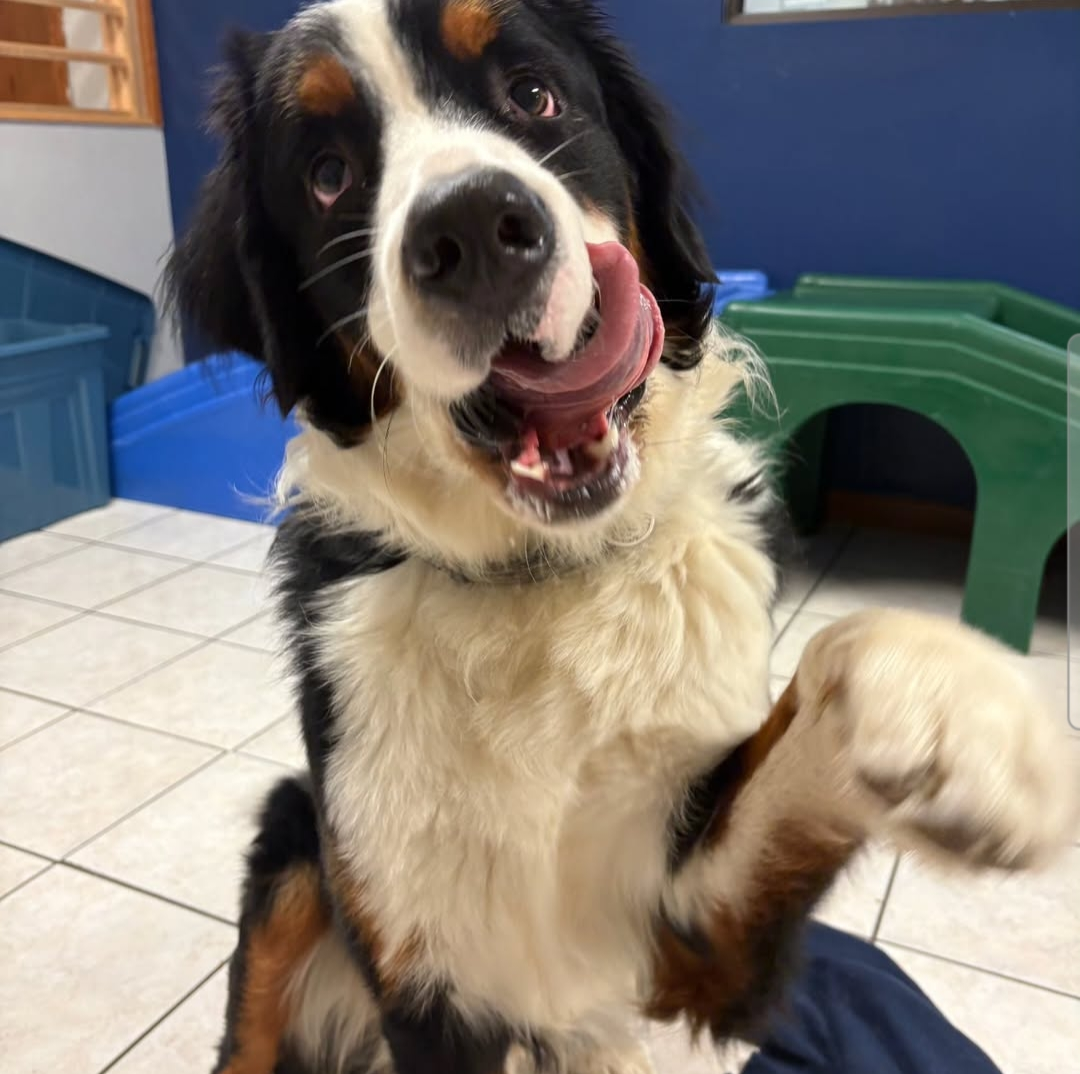Previous Next Bruno Bruno waving hi to everyone. Wants to know if you have snacks Owner: Daniel Breed: Bernese Mountain Dog Age: 1 yr More: He's a big happy boy who's the light in the house daily Vote