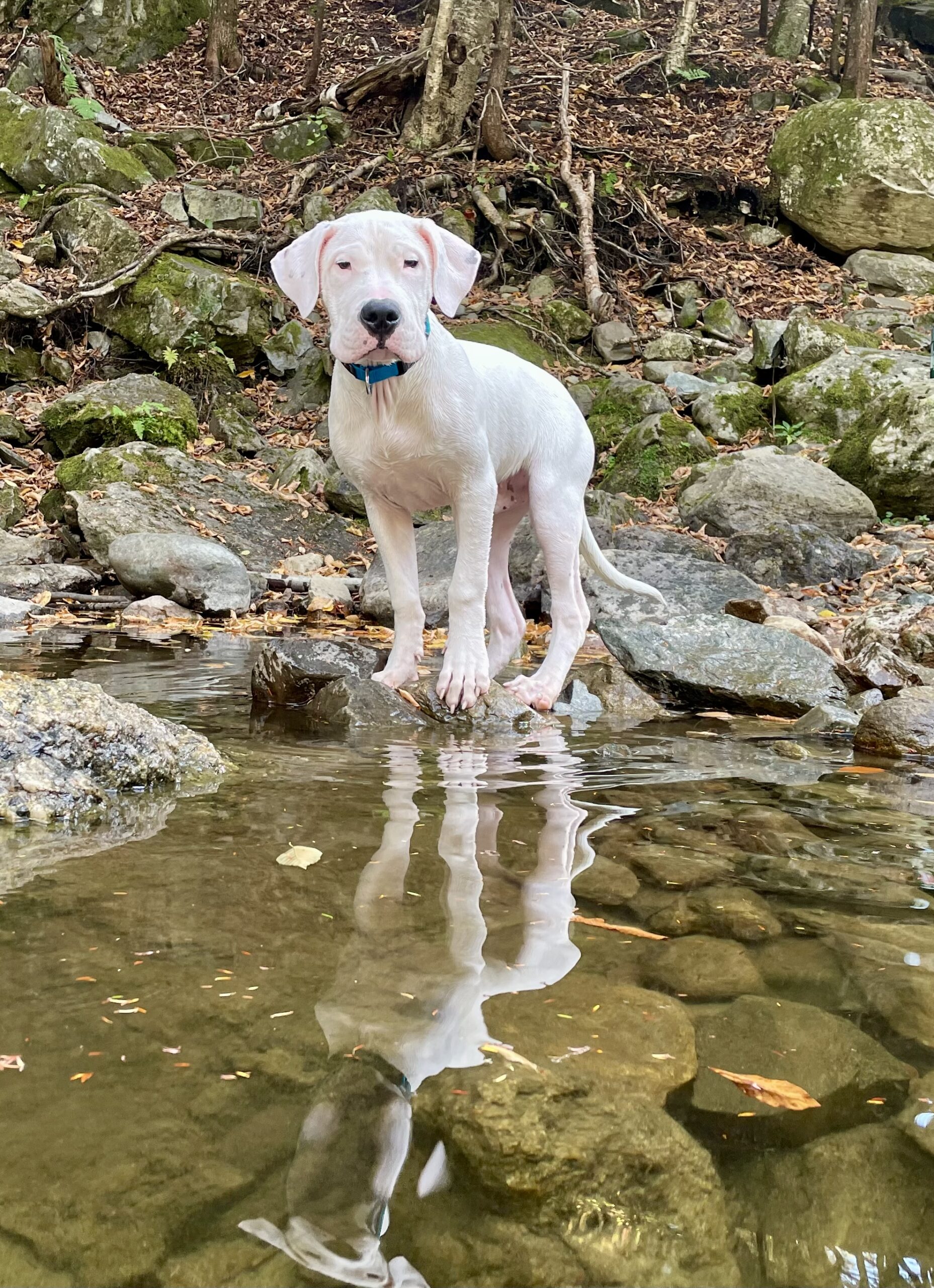 Previous Next Buoy Ready for adventure Owner: Lacey Breed: Dogo argentino Age: 5 months More: Buoy is a rescue puppy who now lives in Vermont and loves the mountains, fields, lakes and rivers! He is an adventure Dogo! Vote