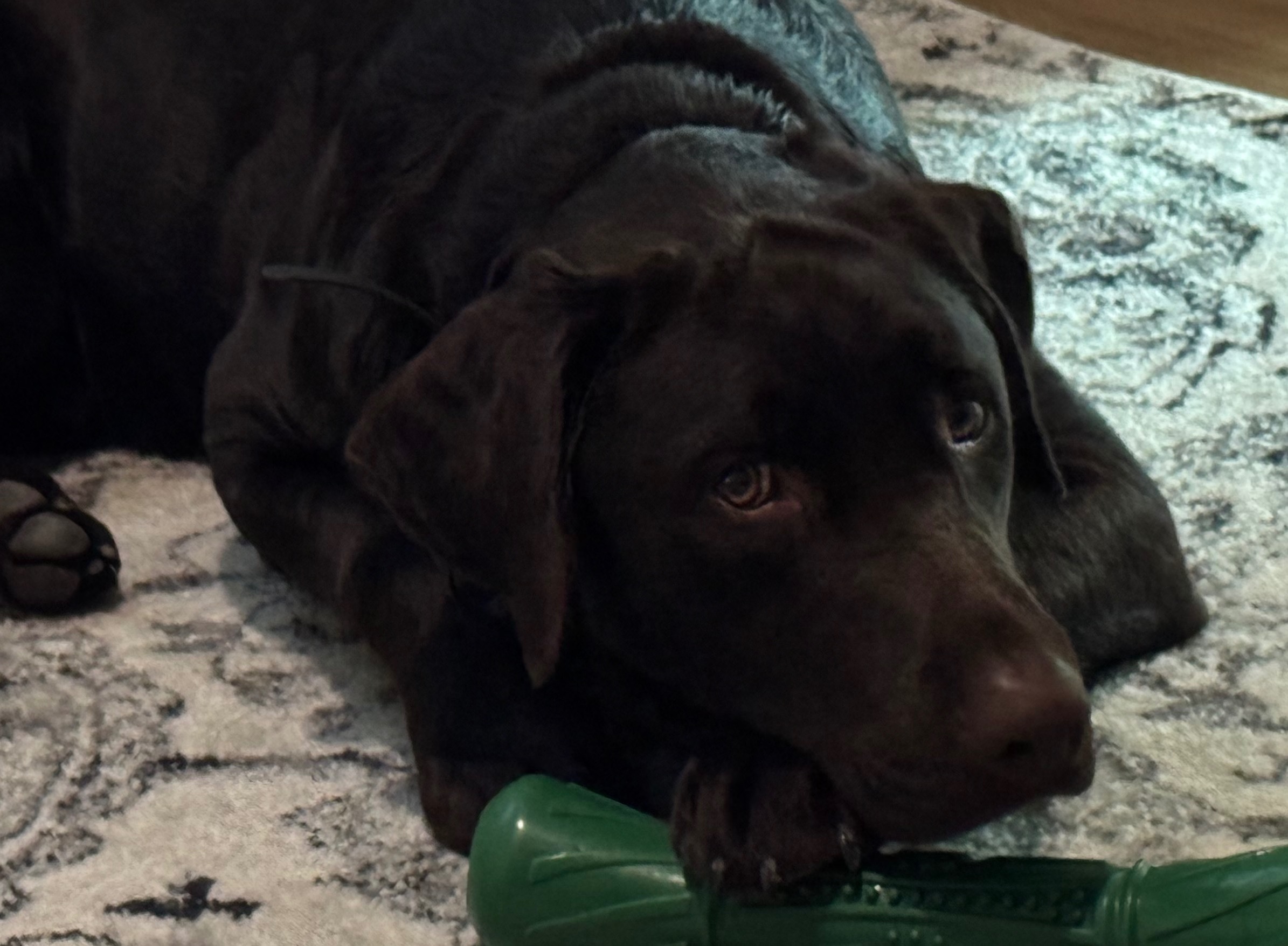 Previous Next Duke Duke with his favorite toy Owner: Stefanie Breed: Chocolate Lab Age: 1 More: He is my husbands service dog and super sweet. Vote