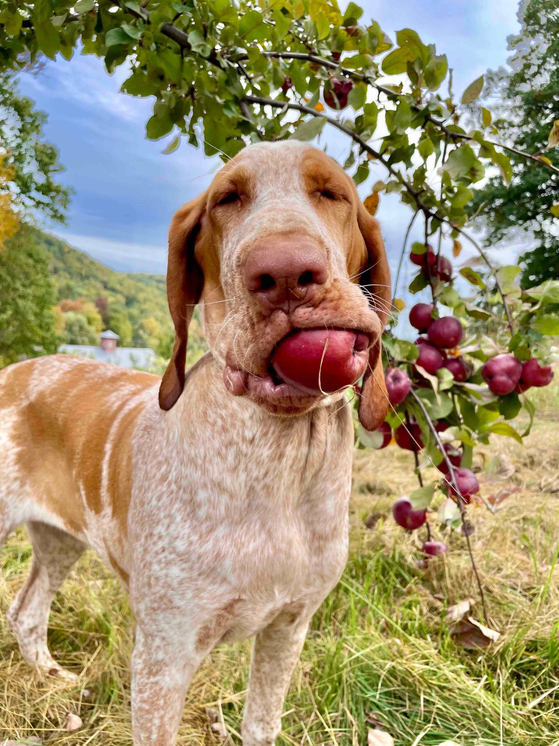 More: Florence is a beautiful Bracco Italiano from Poland. She is feisty, friendly and funny! When she's not out in the field, she loves playing with her dog family and picking her own fruit!