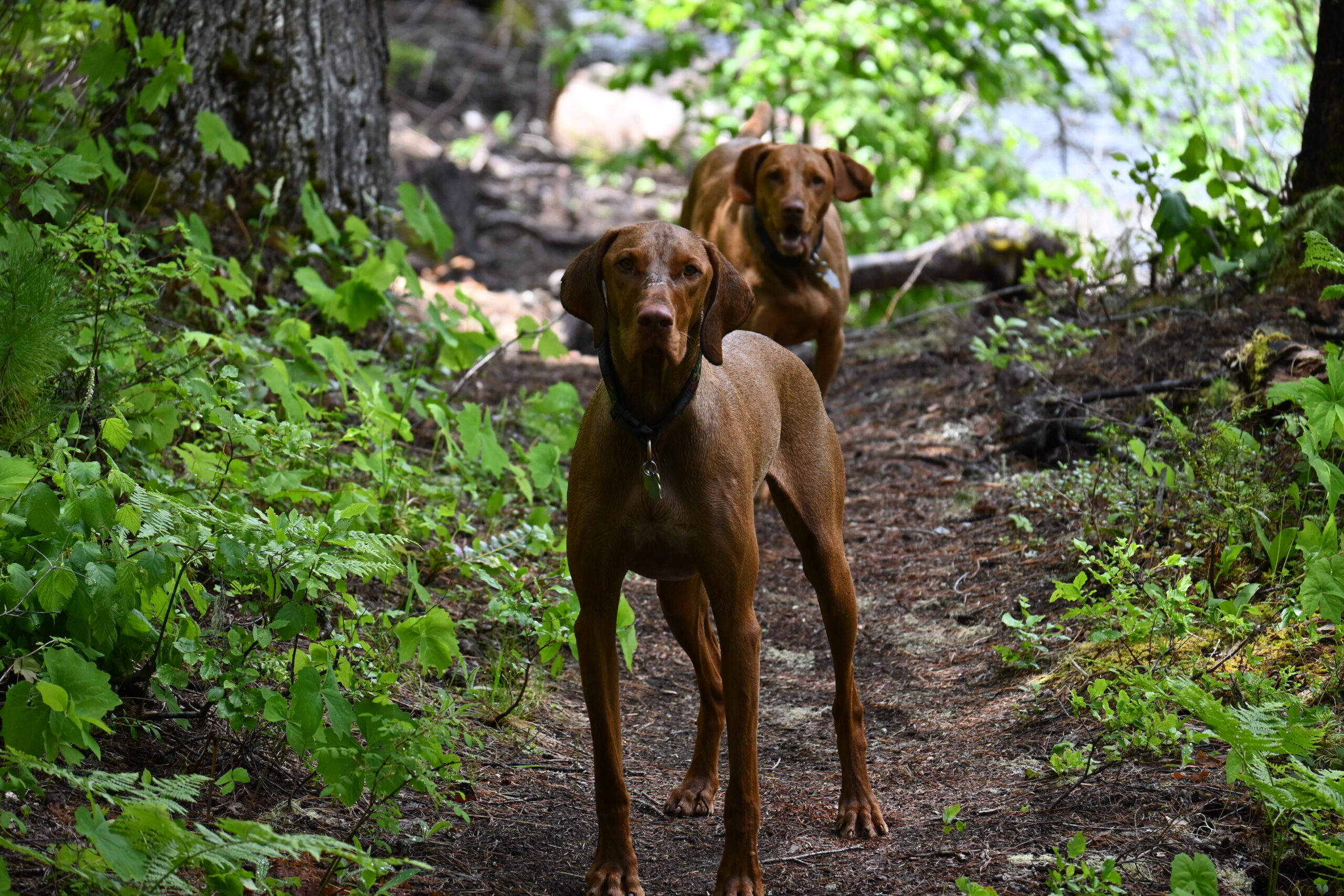 More: They love to run. They are very affectionate. Frank is very big for a Viszla and Gretel is quite small. Frank thinks he is a lap dog and acts like a puppy.
