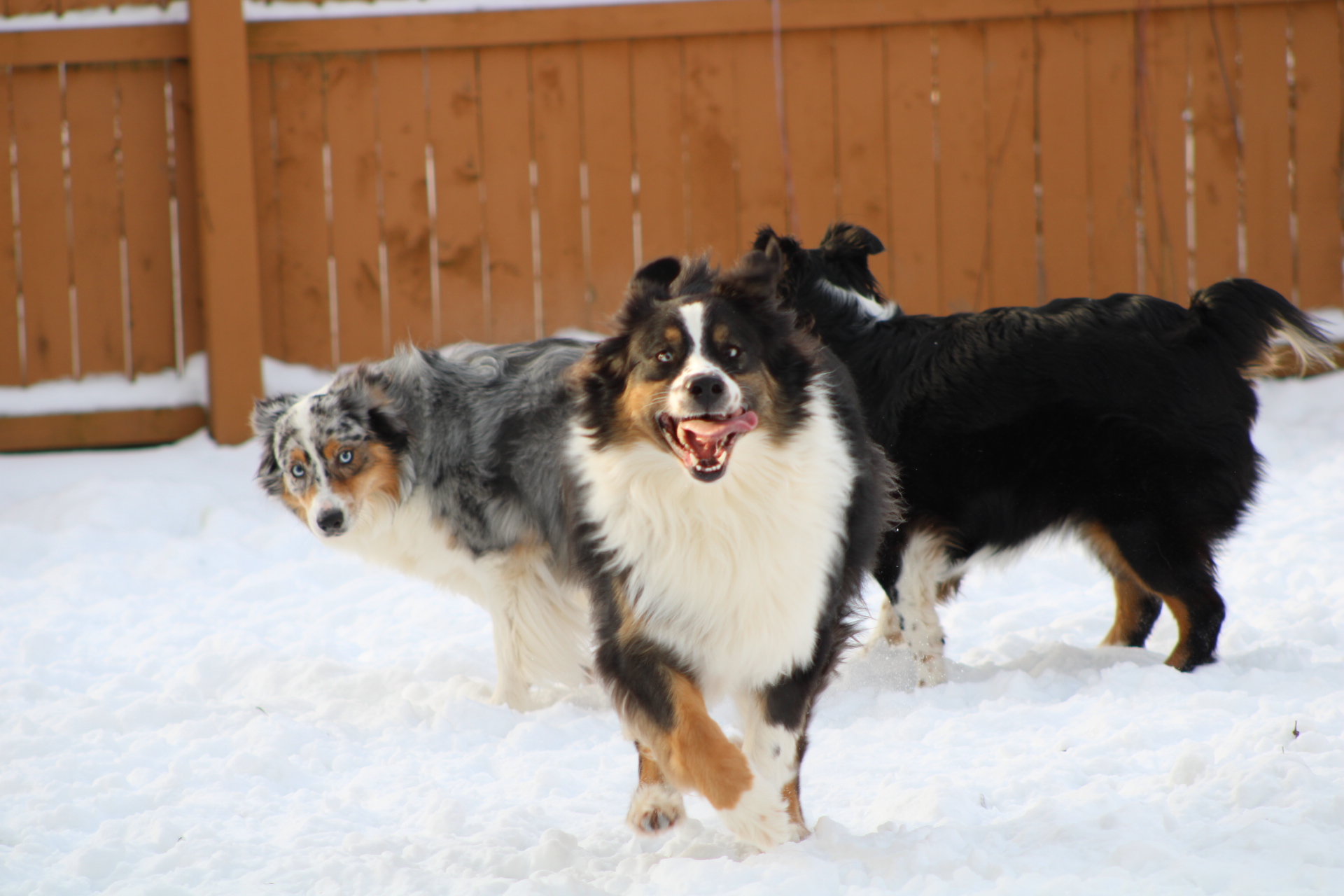 More: These aussies love nothing more than the snow. In fact, calling them in so they don’t get frostbite is like asking them to pick up their toys. They would rather spend their time outside in the cold than snuggled up on the couch with their owners. Their personality’s all differentiate, where jasper has a loud voice and speaks his opinion, pheobe likes to be in charge, and murphy likes to wiggle his booty. Although, murphy was caught off guard in this picture.
