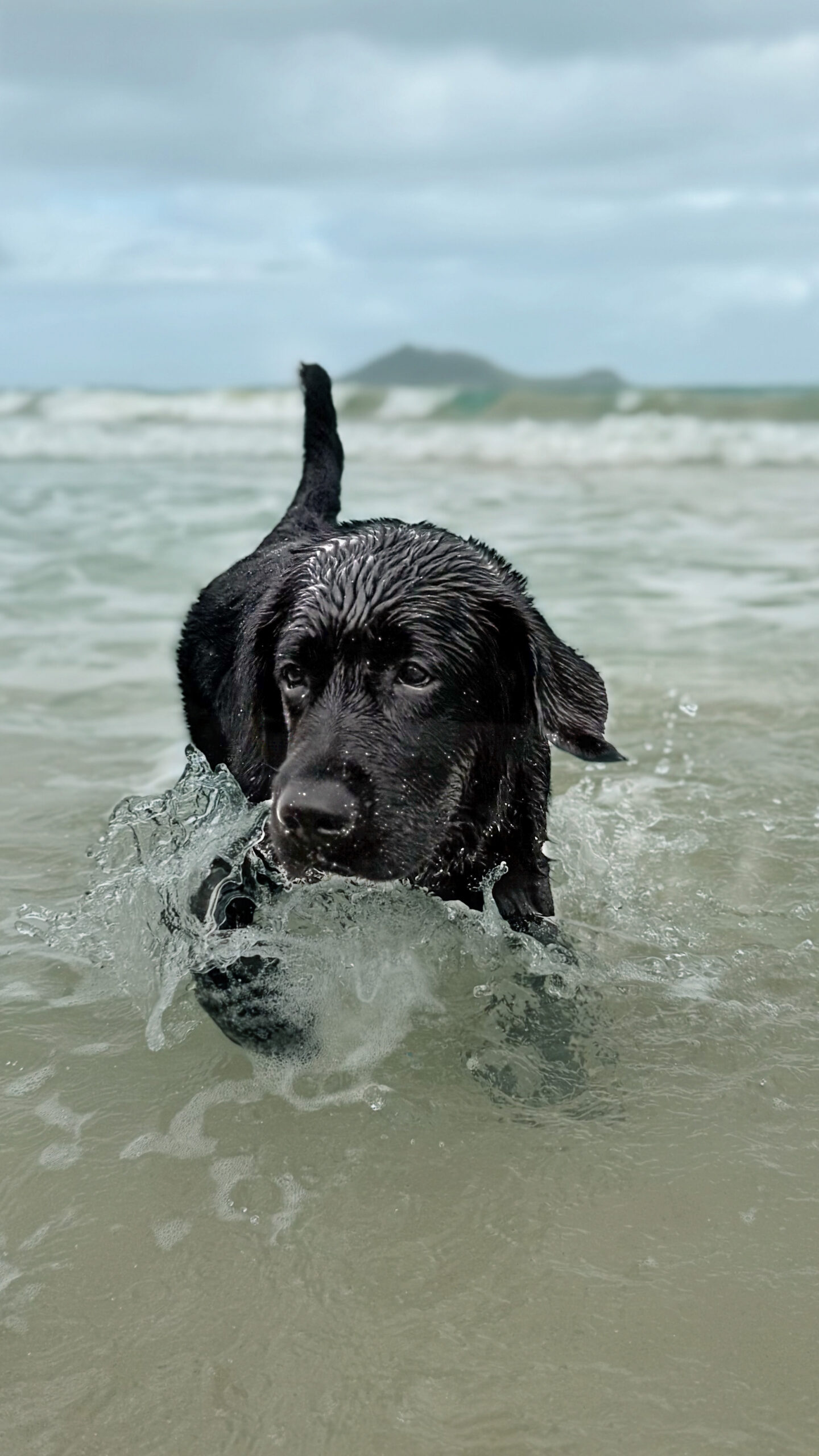 Jet pushing through the shorebreak, Kailua. Almost six months and already at home in the water.