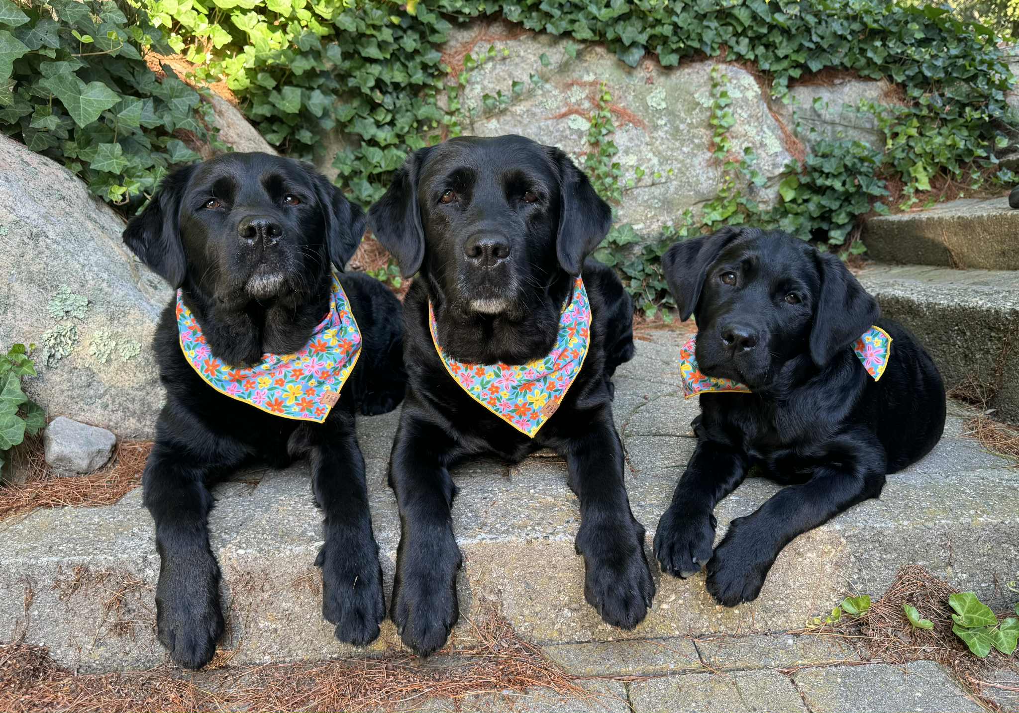 More: three generations of Lakota labs. Grandma Hootie, daughter Litza, great granddaughter/niece Madzi. These three girls are well bred English labradors. They excel in therapy work. And have other titles and rally barn, Hunts agility, etc.. But mostly are devoted companions.