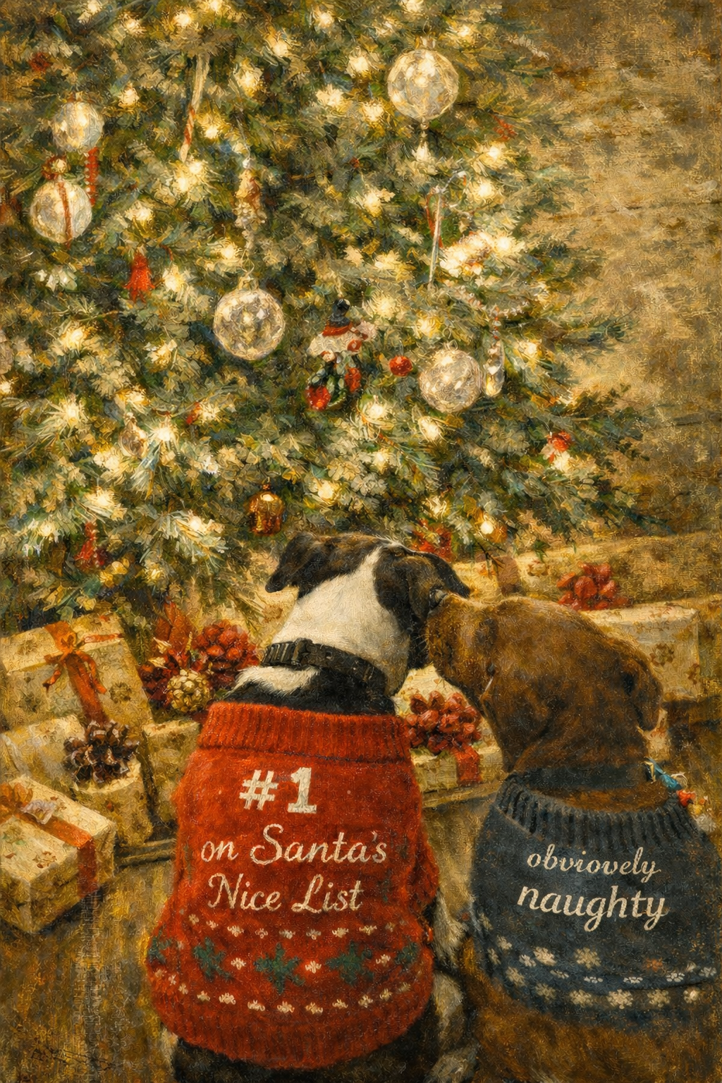 More: Maleficent is very well mannered and Apollo is… well… a puppy… their Christmas sweaters say it all.