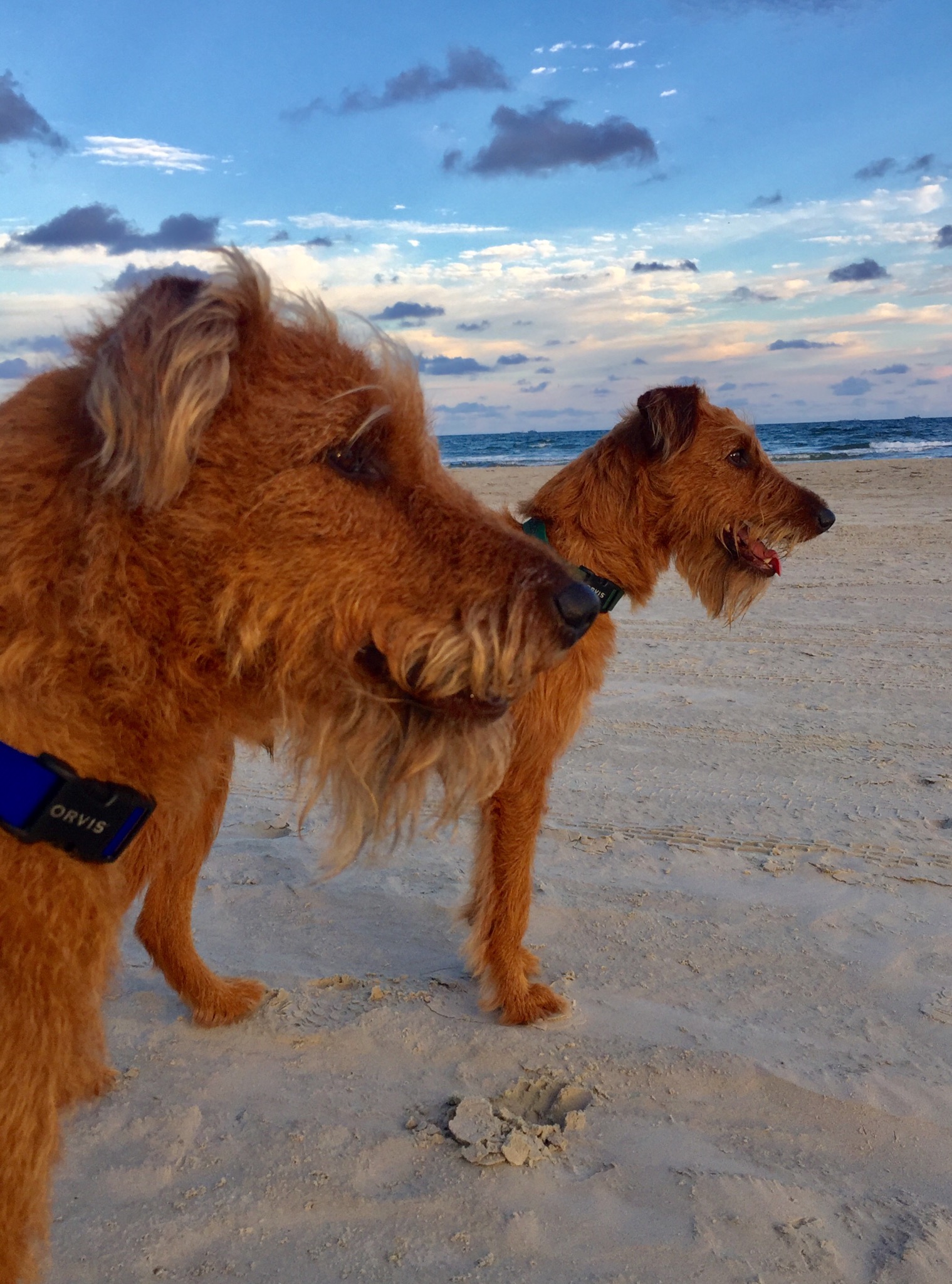 More: They love the outdoors - chasing squirrels, birds, lizards (geckos!), and the surf. They have never met a person - especially a child - they did not love. They are always a loyal team, sharing good and happy spirit.