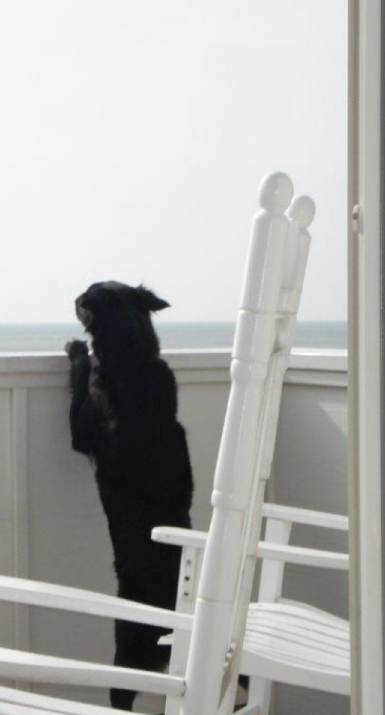Previous Next Myra Watching the waves crash Owner: Karen Breed: Black lab Age: Deceased More: When Myra was in the cottage, she would spend her time on the balcony being one with the ocean’s endless sounds and rhythm of the crash. Vote