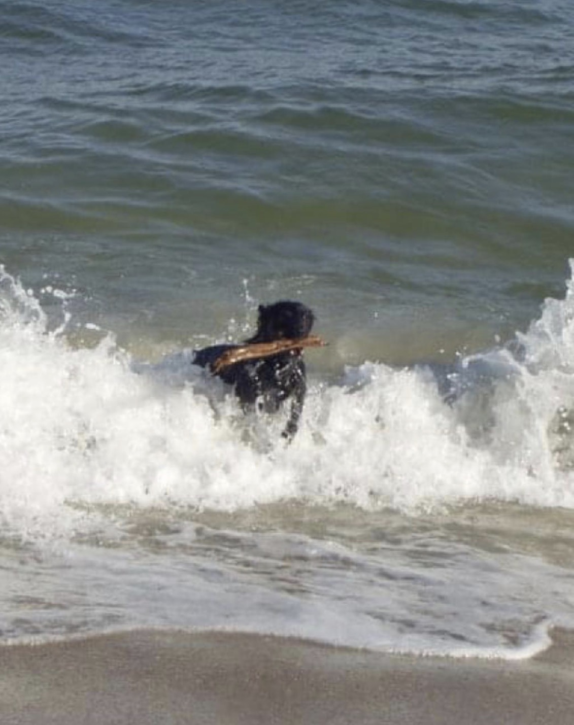 More: Myra was my truest soulmate. She went on all of my vacations with me, her favorite vacation place was the beach. She absolutely loved jumping waves and fetching sticks and tennis balls! When we were in the cottage, she would stay on the balcony and stare endlessly at the ocean, listening to the waves crashing down on the sand. She refused to be bred, she would bite at the male dog and growl at him. I had resigned myself to no puppies. 😔 Then, when she was 15 yrs old she ran off one morning when I let her out and came back two days later pregnant with slobber all over her! She did it her way! She was just too old to give birth to her three puppies 🐶 and she gained her angel wings. The pups were all healthy and beautiful, but they weren’t Myra. I’ll see her again some day soon! 💕