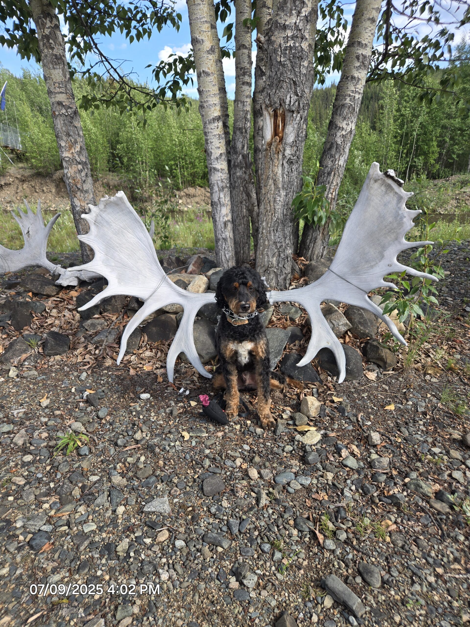 Previous Next Rocky Spread your antlers Owner: Kevin Breed: Mini Bernadoodle Age: 3 More: He's the best Alaska traveling partner.... Vote