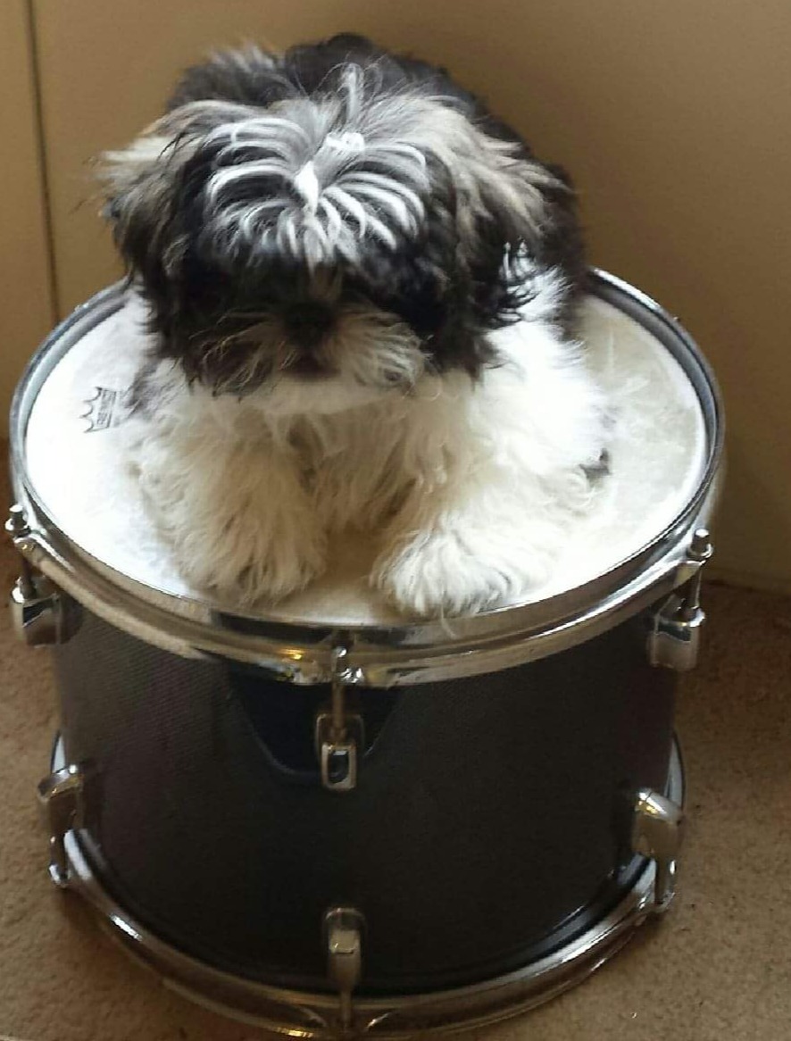 More: Swayze was just a puppy in this pic. He was spunky and a lover boy. He was named after Patrick Swayze, and the name fit him well. He passed away last year from cancer just a few months before his drummer dad. I miss this little bundle of joy. He will forever be in my heart right beside my husband.