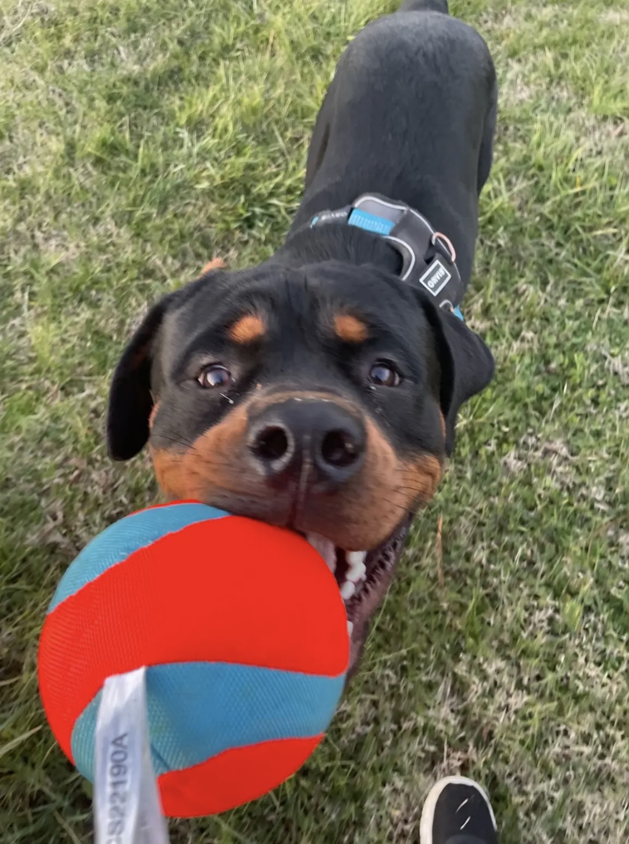 Theo loves to play ball while wearing his Orvis harness!
