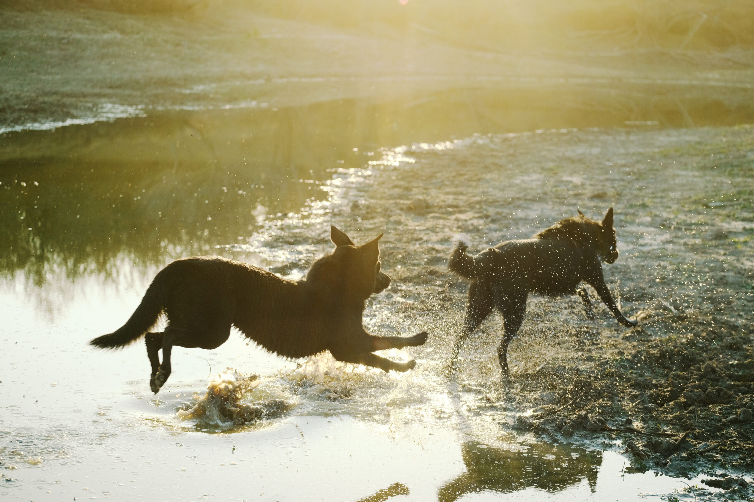 More: Both of these girls love to play. Tippy likes to be chased and Ellie loves to do the chasing, so this is a common occurrence for them. Adding water, mud, trees make it more thrilling for them.