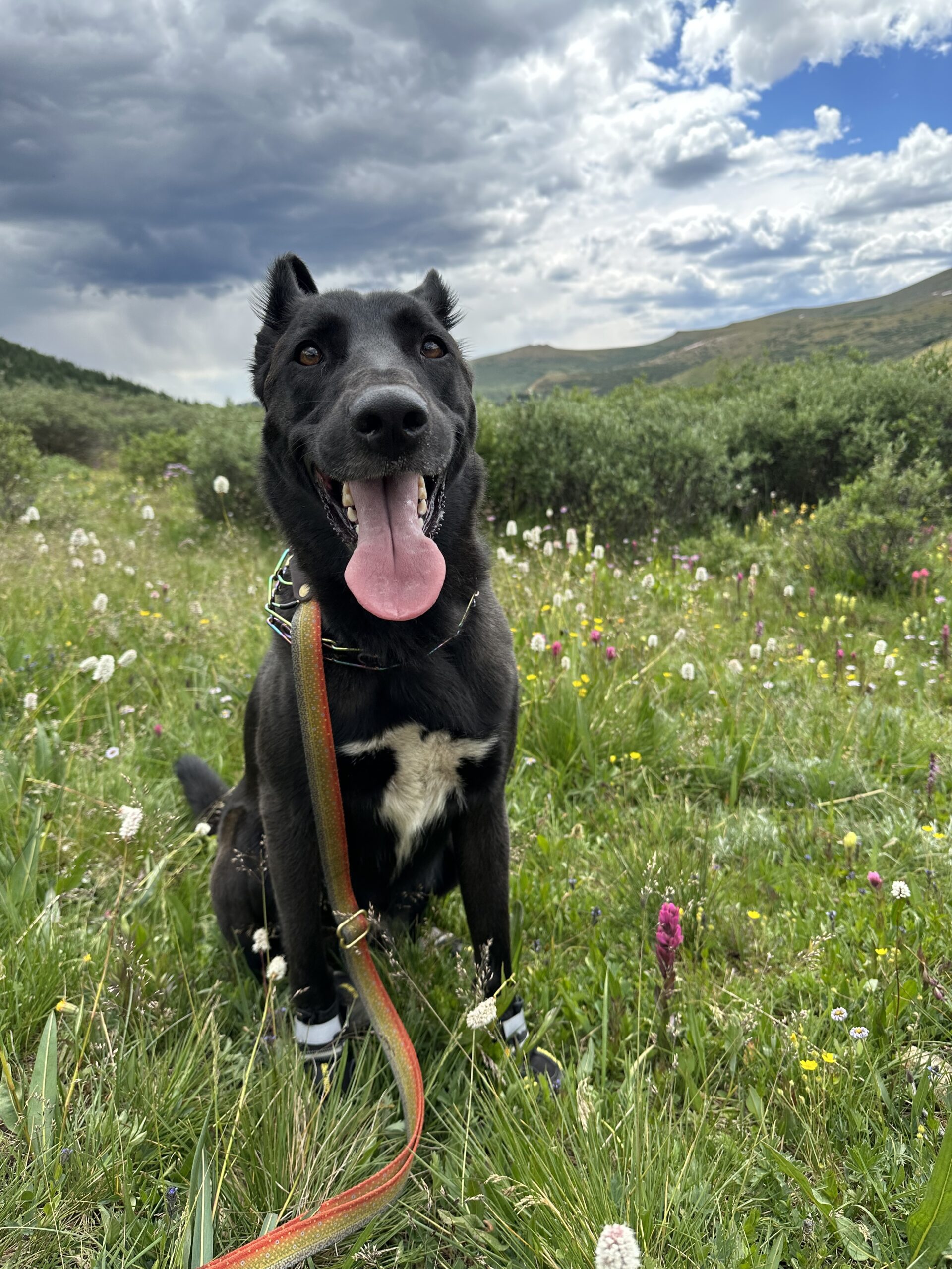 Toby taking in all the wild flowers during a beautiful hike in Colorado!