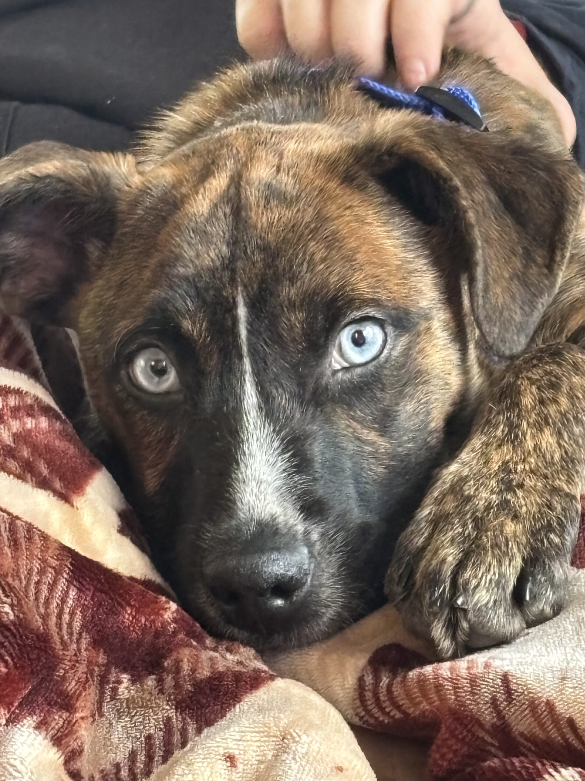 More: He is a playful puppy that we adopted from our local shelter. He loves snuggles and toys that squeak. He has a nose that can track the smallest thing in the grass he’s after. He’s got a calm personality inside, but once you get him outside it is playtime.