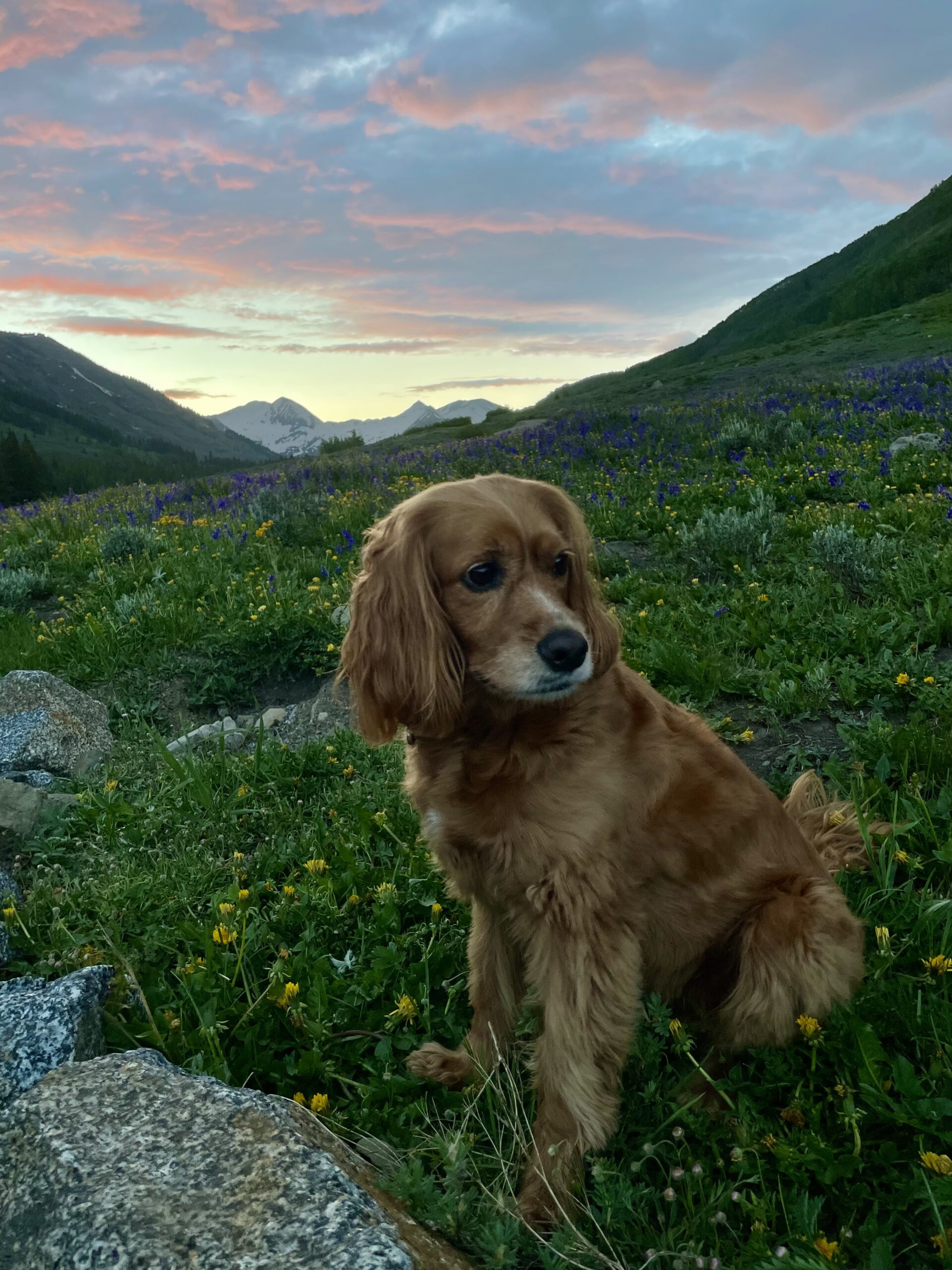 Previous Next Zola Rose Wildflowers and sunset in Aspen Owner: Diane Breed: Spaniel/Golden mix Age: 5 More: ZoZo lives in Denver CO, with her mom Allyson Mays and loves roadtrips to the mountains. She is my grand pup. Vote